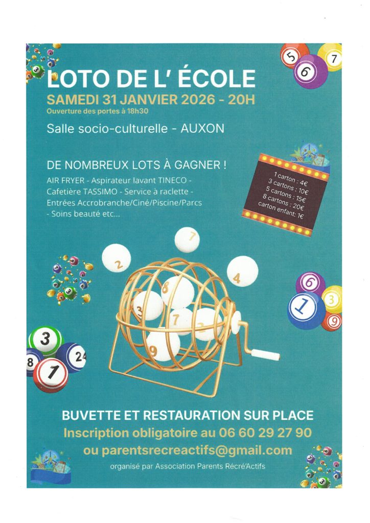 - AUXON, samedi 31 janvier à la salle socio-culturelle