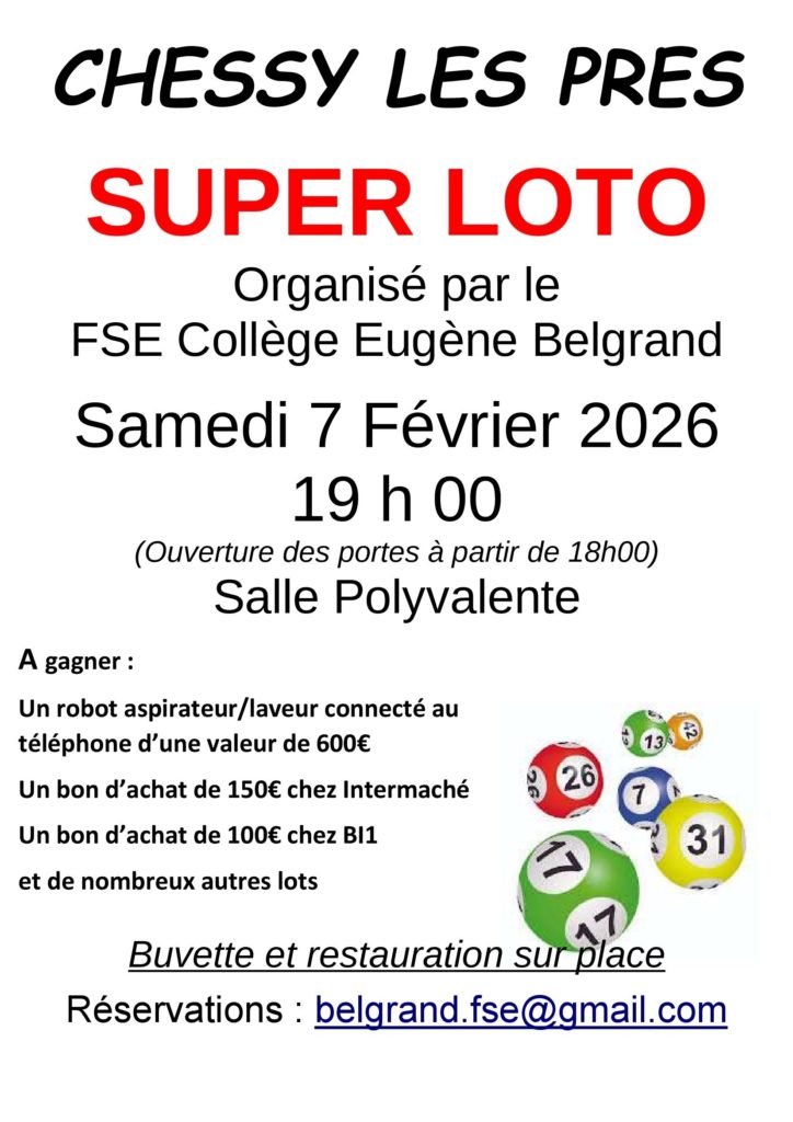 CHESSY LES PRES, samedi 7 février, à 19h à la salle polyvalente